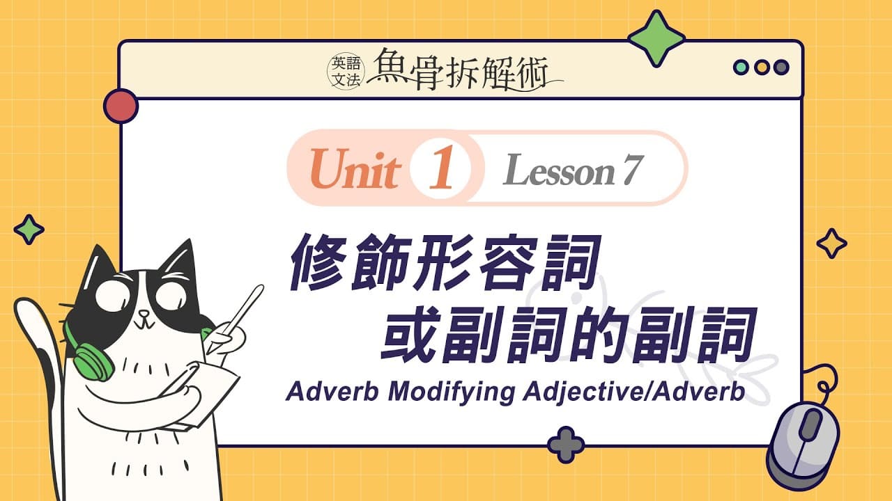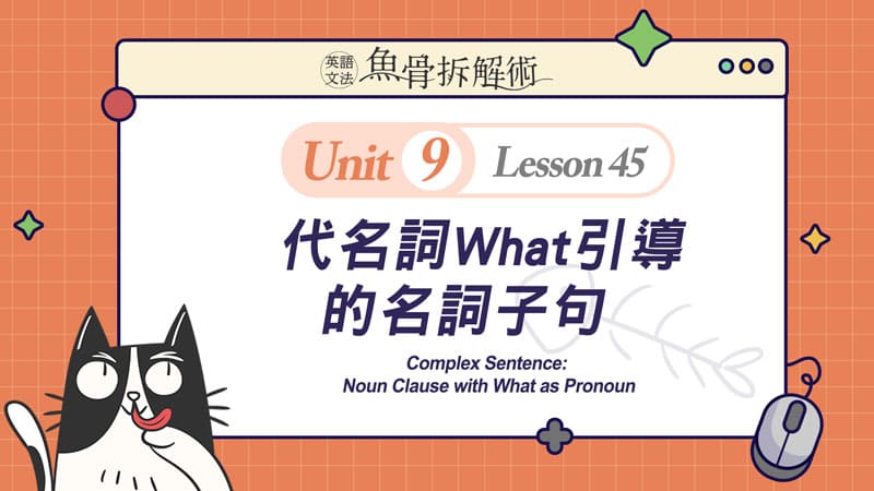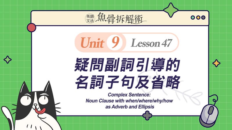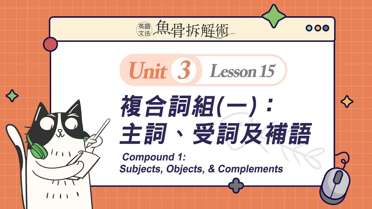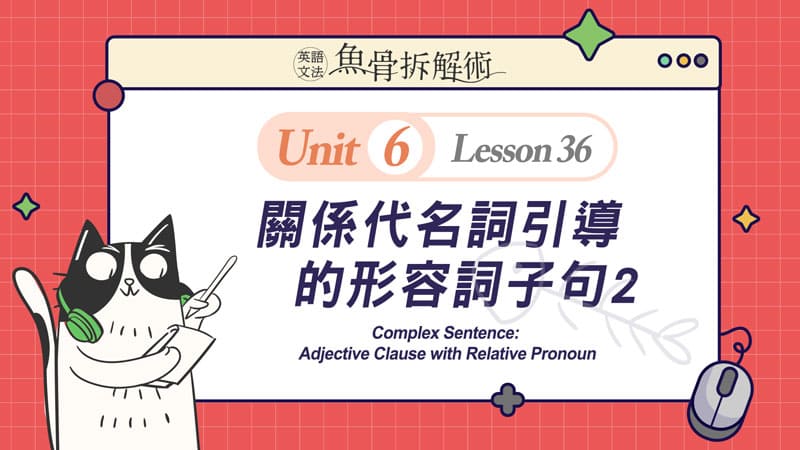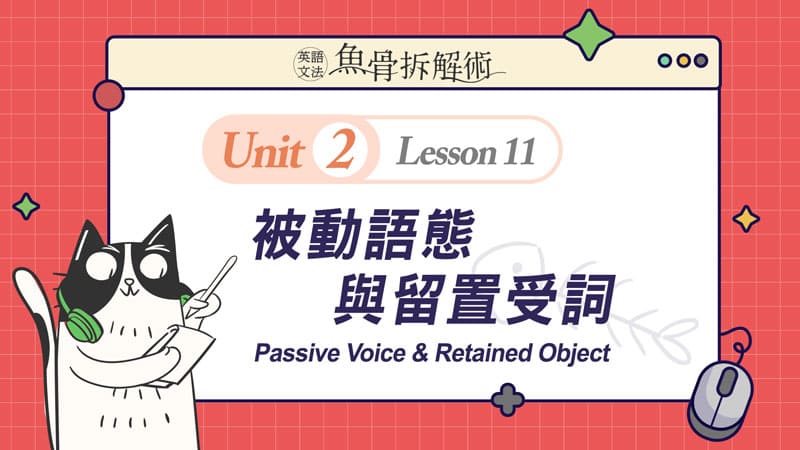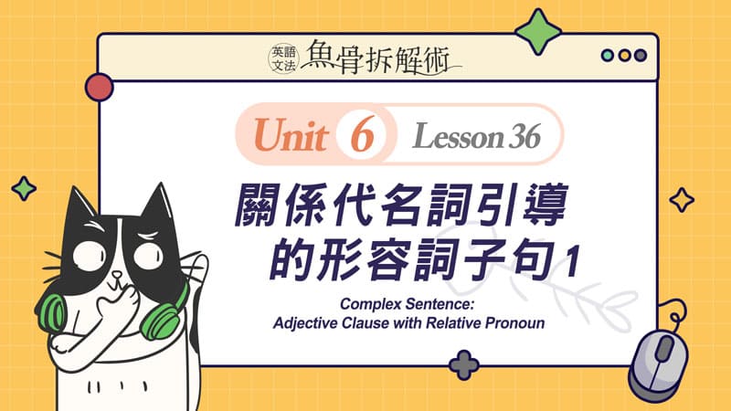 菁英教學團隊將複雜的文法概念從簡到難,切割至合理的吸收量,再搭配充滿趣味性的貓吃魚的情境